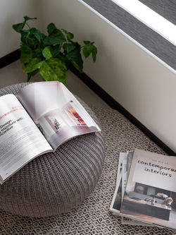 布紋和木紋的交織下透過黑玻璃的反射織就多重層次,也拉闊空間尺度,